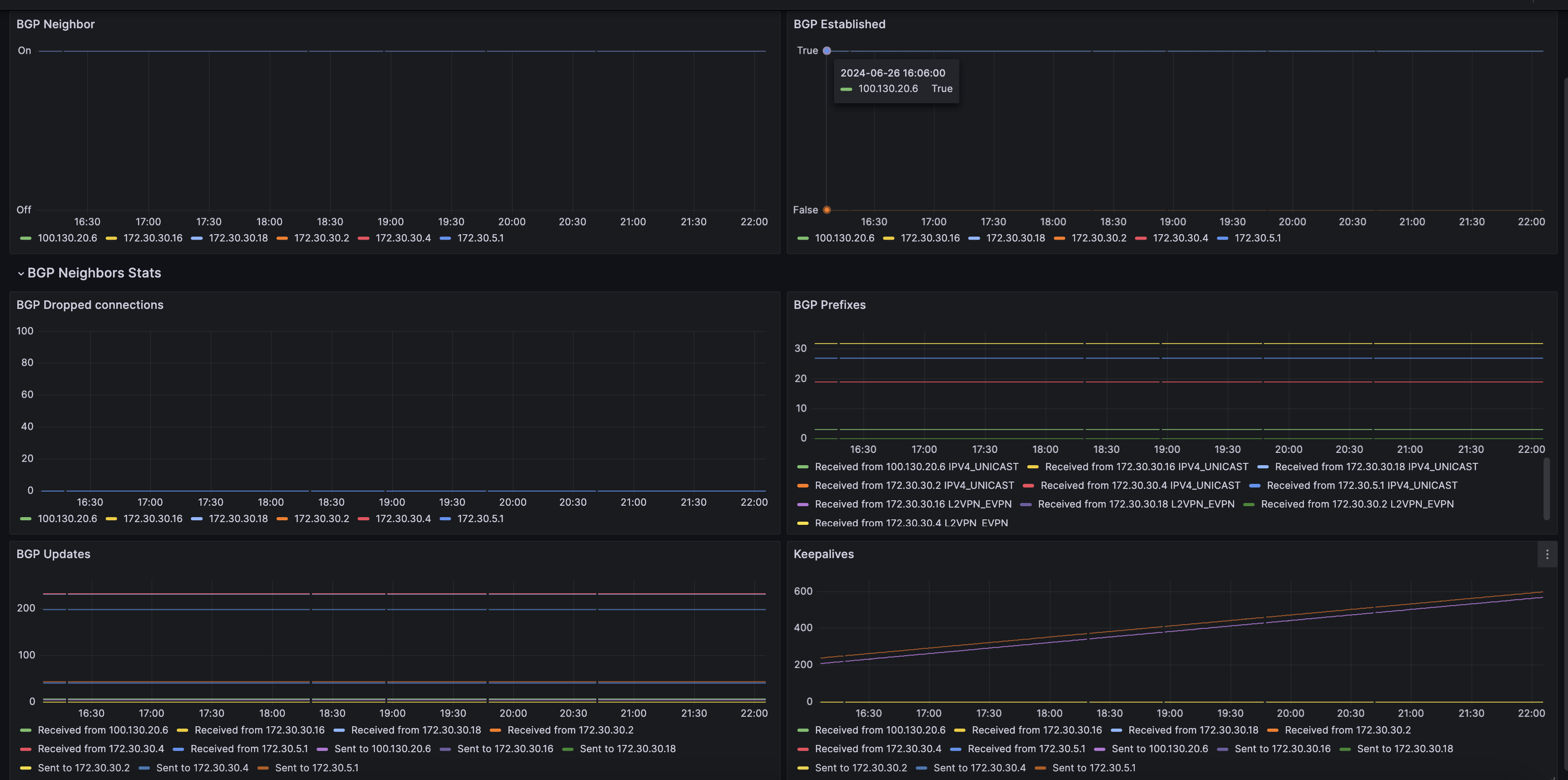 - Number of BGP Updates and Prefixes sent/received for each BGP Neighbor
